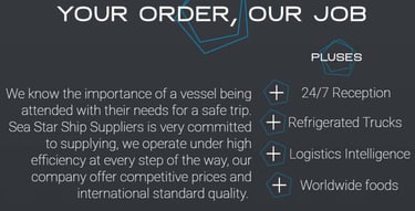 Beyond providing supplies, Sea Star offers a comprehensive range of ship-related services, including motor rewinding, curating, hatch cleaning, LSA, and LFFA, all delivered to the highest standards. Additionally, we offer conveniente Agency Services such as Cash to Master, Custom Clearence, and Crew Change. If you have any additional needs, reach out!